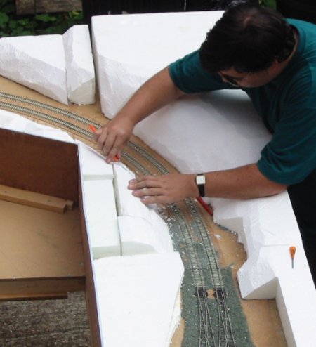 Major landscaping was constructed from polystyrene blocks which were glued in place and cut to shape. |